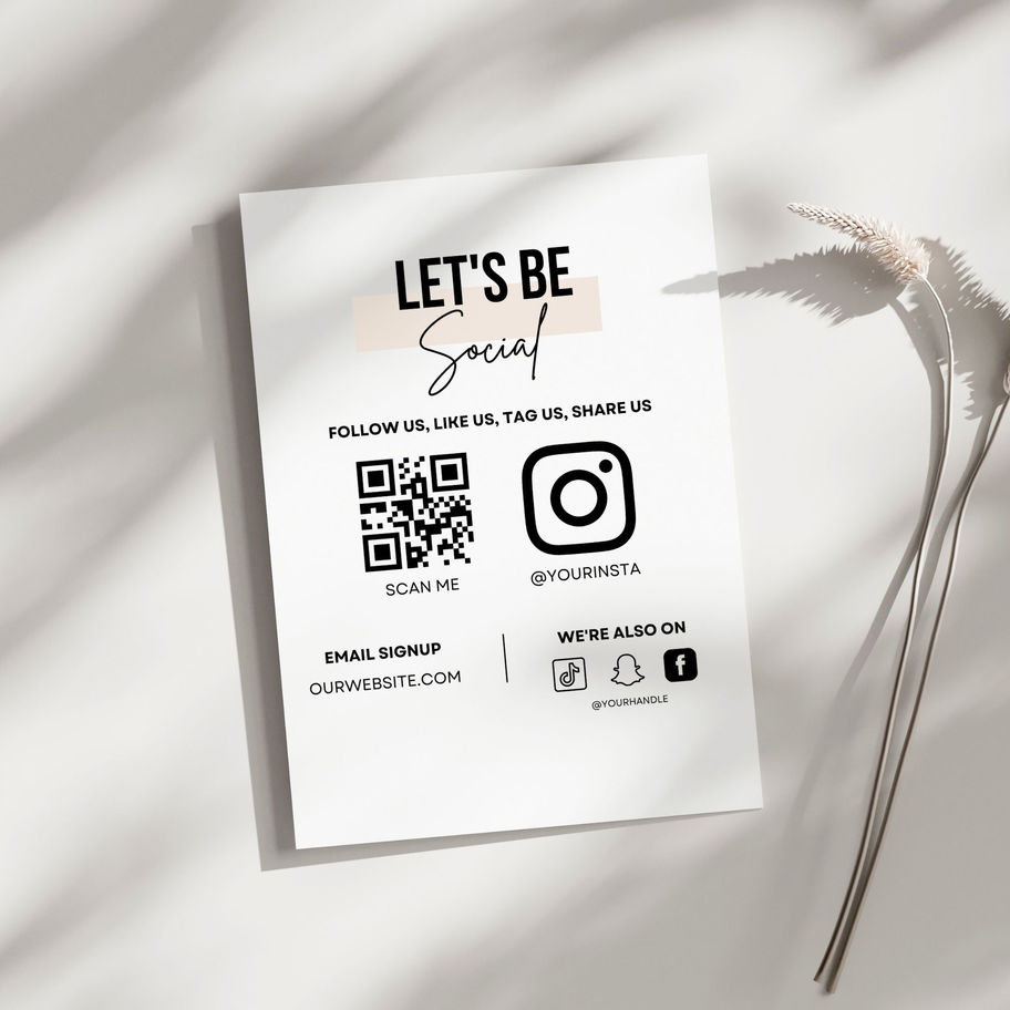 Encourage your clients to follow, tag, and connect with your business online using this editable “Let’s Be Social” Sign Template.